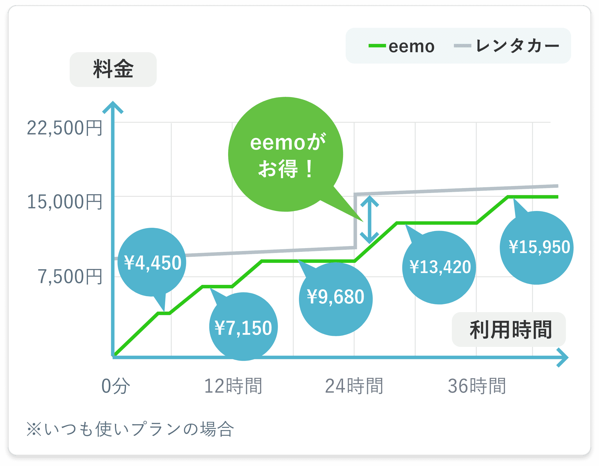 | ご利用の例 | eemo | 他社ガソリン車のカーシェア | レンタカー |